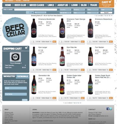 AJAX based shopping cart code. User is no longer dumped to the shopping cart page when a cart action is performed (as per our 'current' website - http://www.beerstore.co.nz in Lasso 8.5.6). Mobile site also rocks... Just access the same url with an iPhone or Android device. Multi currency / geography support (access http://audev.beercellar.com for the same site code but with Australian specific info). Note: This website is incomplete, and will only be publicly accessible for the next 48 hours.