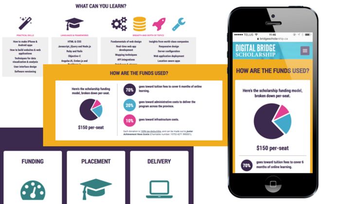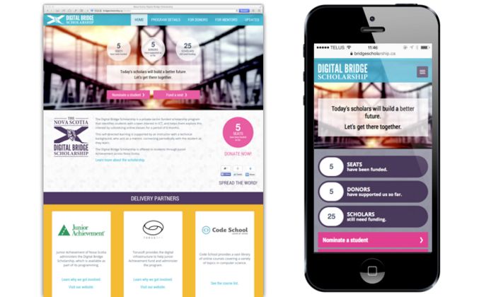 The Nova Scotia Digital Bridge Scholarship is a private-sector funded scholarship program that identifies students with a keen interest in ICT, and helps them explore this interest by subsidizing online classes for a period of 6 months. Students are paired with a mentor with a technical background to support their learning.