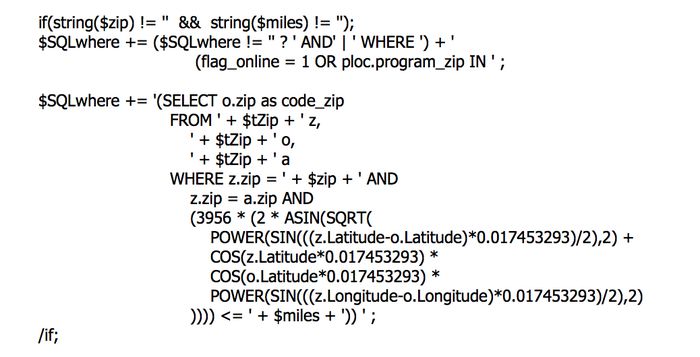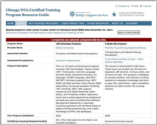 Section 508 Compliant; Zip Code (within X miles of a Zip Code) radius search; jQuery nested form to select items to compare; compare selected items grid; review stars; uses the LassoFusebox framework.